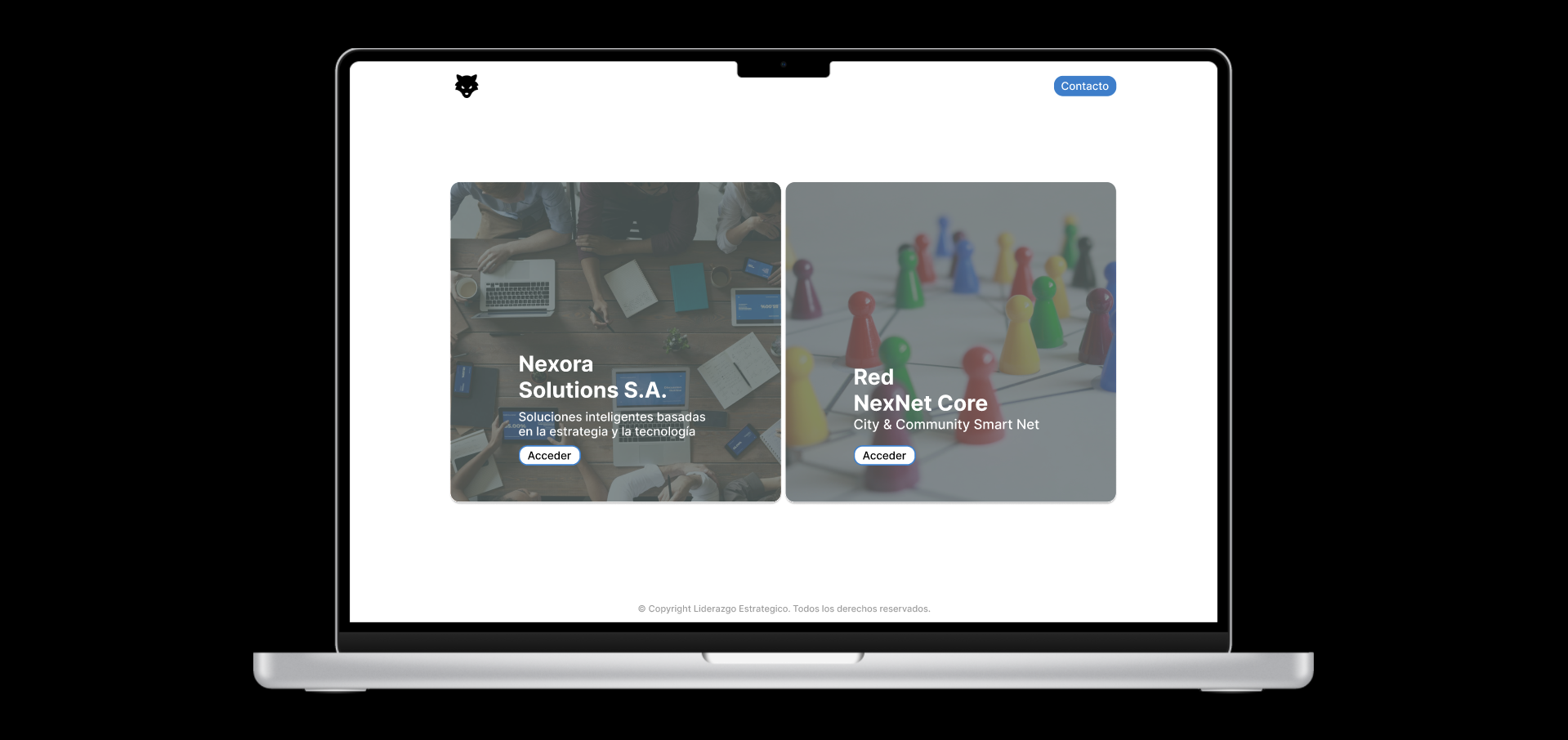 Siguiendo este enfoque, se diseñó una página inicial que funcionara como punto de decisión para que el usuario pudiera dirigirse directamente a la web de la empresa o a la de la red corporativa, optimizando la navegación y la experiencia de acceso. Todo el prototipo fue desarrollado en Figma, explorando la planificación de estructura, jerarquía visual y flujos de usuario.